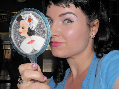 And even tho I really do not need another hand mirror, I couldn't resist this gorgeous little 50's one with a felted cartoon pinup on the front.
